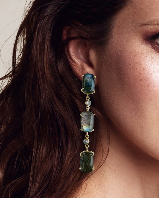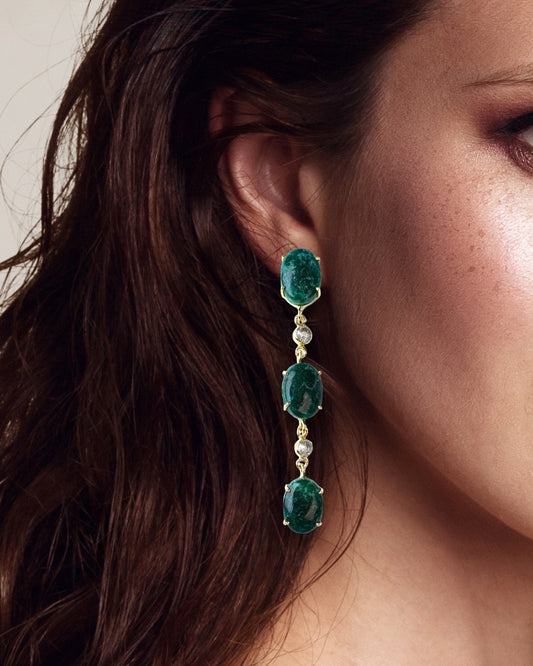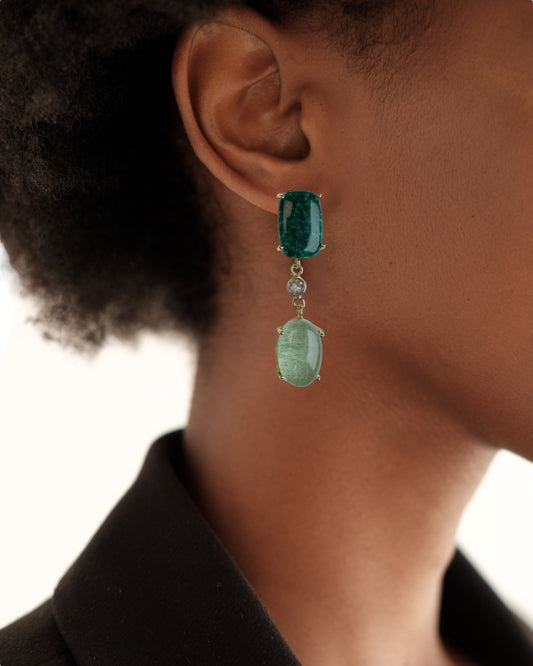 Sage Gemstone Statement Earrings in Emerald and Green Strawberry Quartz
