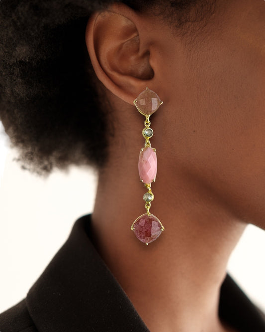 Camelia Gemstone Statement Earrings in Cherry Quartz and Pink Opal