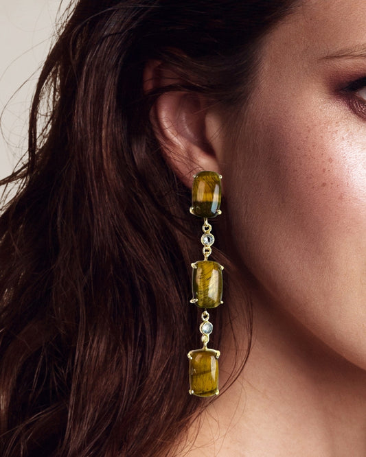 Yara Gemstone Statement Earrings in Tiger's Eye and Turquoise