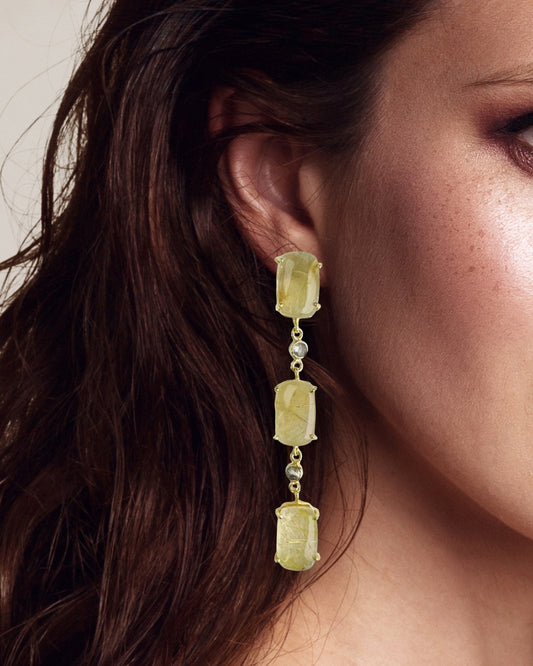 Heidi Golden Rutilated Quartz Gemstone Statement Earrings