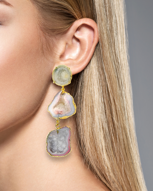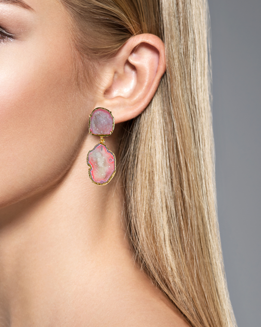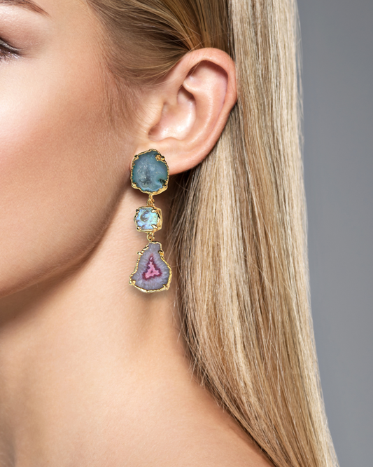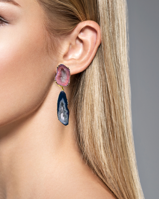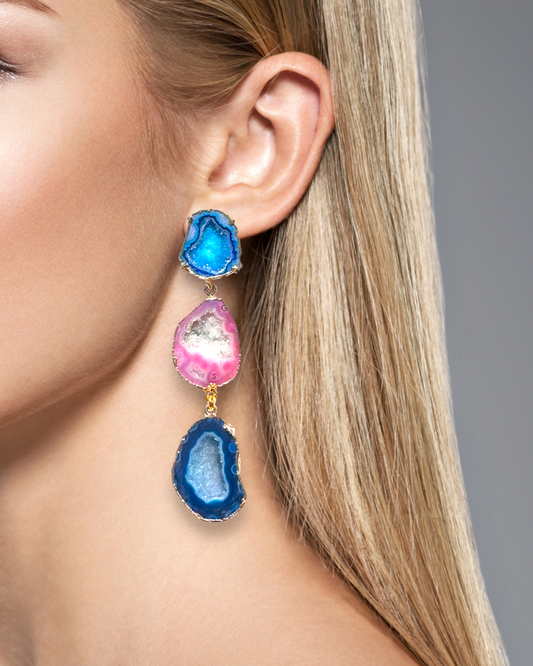 Melody Blue and Pink Geode Statement Earrings