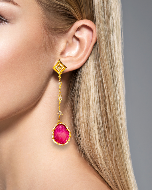 One of a Kind Pink Agate Statement Drop Earrings