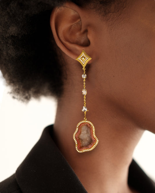 Niveah Beige and Blush Pink Geode Statement Earrings