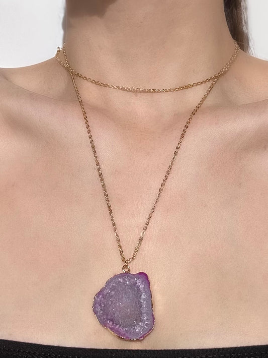 Jacqueline Magenta Geode Maxi Statement Necklace