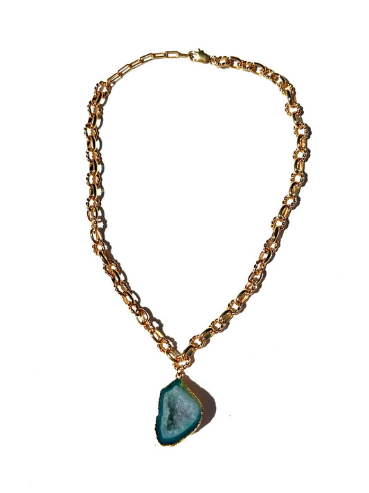 Josephine Teal Geode Chain Statement Necklace