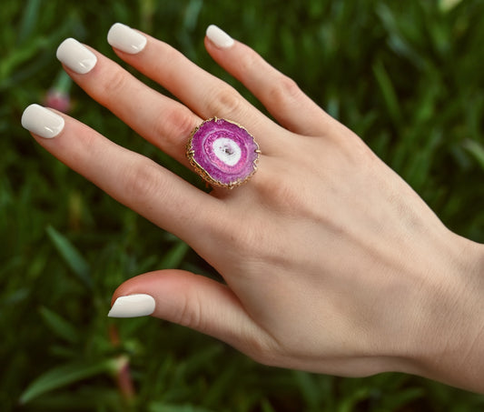 Ruby Pink Solar Geode Statement RingRegular price $65.99 USDRegular priceUnit price / per$165.00 USDSale price $65.99 USDSale
