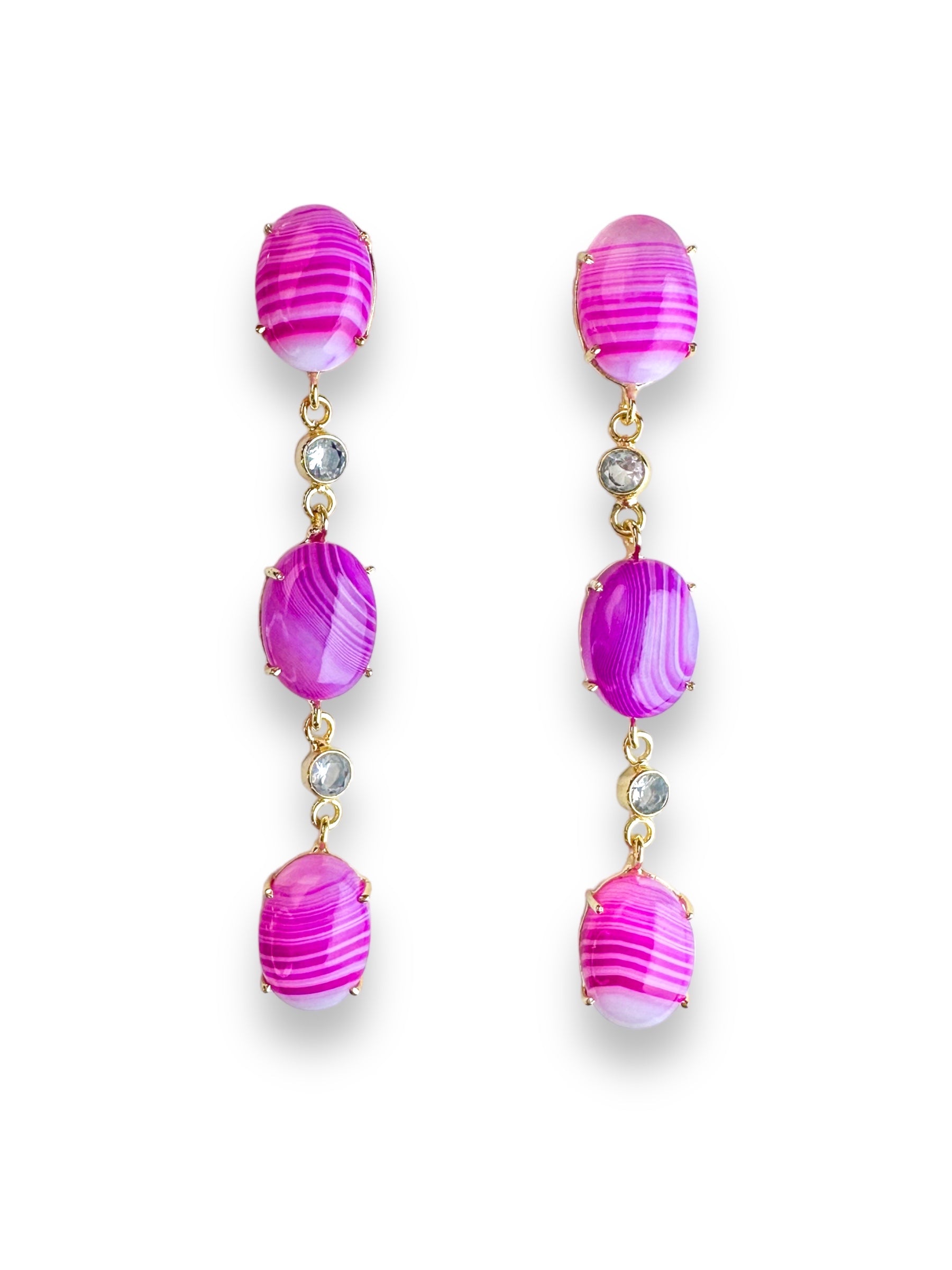 Olivia Pink Striped Agate Gemstone Statement Earrings